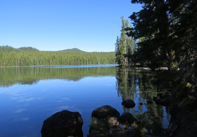 After my stay at Hosmer Lake, I moved 5 miles down the road to camp at Lava Lake. This is the big lake where I was camping. You can see how it got its name.